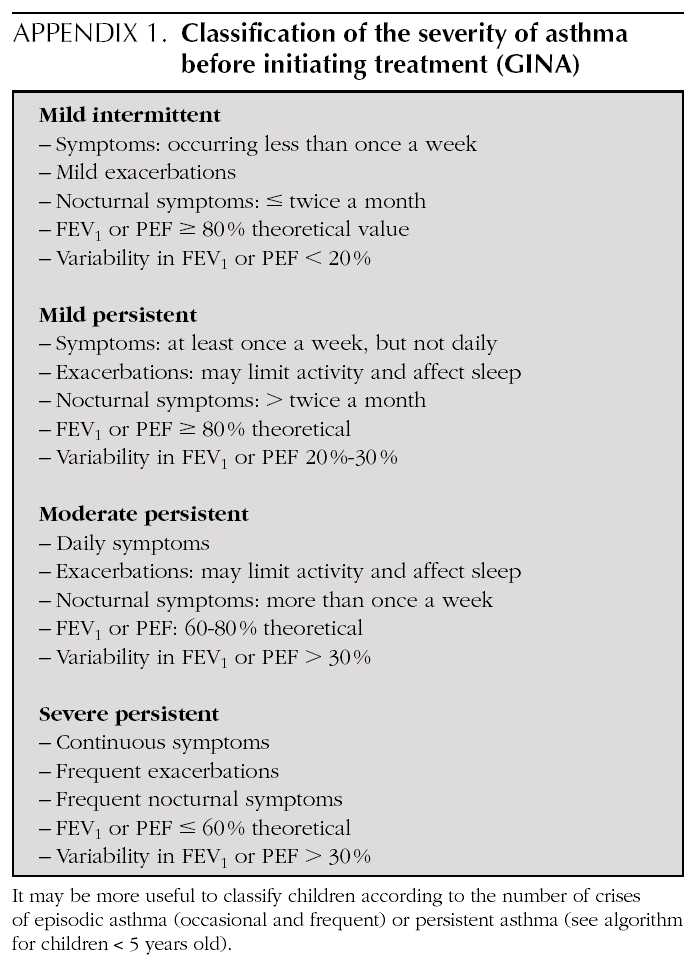 APPENDIX 1. Classification of the severity of asthma before initiating treatment (GINA)