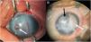 The Apgar score was 3 at 1min, 8 at 5min and 9 at 10min. The physical examination of the newborn was normal, save for bruises in the face and a lesion in the eye (Fig. 1). At 4h post birth, the infant was admitted to the neonatal intensive care unit, where examination by an ophthalmologist confirmed perforation of the right cornea associated with iris prolapse and hyphaema. A head CT scan evinced the presence of ocular perforation, a dysmorphic crystalline lens and choroidal detachment (Fig. 2). The infant underwent suturing of the corneal perforation at 7h post birth, without intraoperative complications (Fig. 3A). The postoperative ultrasound scan of the eye found evidence of vitreous haemorrhage. Treatment was initiated with intravenous dexamethasone, topical tropicamide, ofloxacin, chloramphenicol and prednisolone. At three weeks, the cornea appeared clearer, the vitreous haemorrhage was reabsorbing and the lens was located in the anterior chamber of the eye. At 2 months, the patient underwent a lensectomy-vitrectomy to resolve the complications of the crystalline lens rupture (Fig. 3B).
