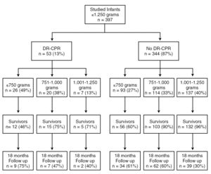 Long-term outcome data in very low birth weight (VLBW) infants exposed to DR-CPR are limited to two single center descriptive studies 13,14 that combined describe only a total of 16 infants.