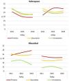 Análisis estadísticoLas variables cuantitativas se describieron con medias, desviaciones estándar, medianas y rangos intercuartílicos. Las variables cualitativas se describieron con frecuencias, porcentajes e intervalos de confianza al 95%. Se valoró la asociación entre variables cualitativas con la prueba chi cuadrado de Pearson y para variables cuantitativas con la prueba t de Student. El nivel de significación estadística fue p<0,05. Se presentan los resultados como diferencias relativas y absolutas de las prevalencias entre los años estudiados. Para mejorar la precisión de las estimaciones en el cálculo de intervalos de confianza se aplicaron técnicas de bootstrapping. Se empleó el programa estadístico Stata v.16.