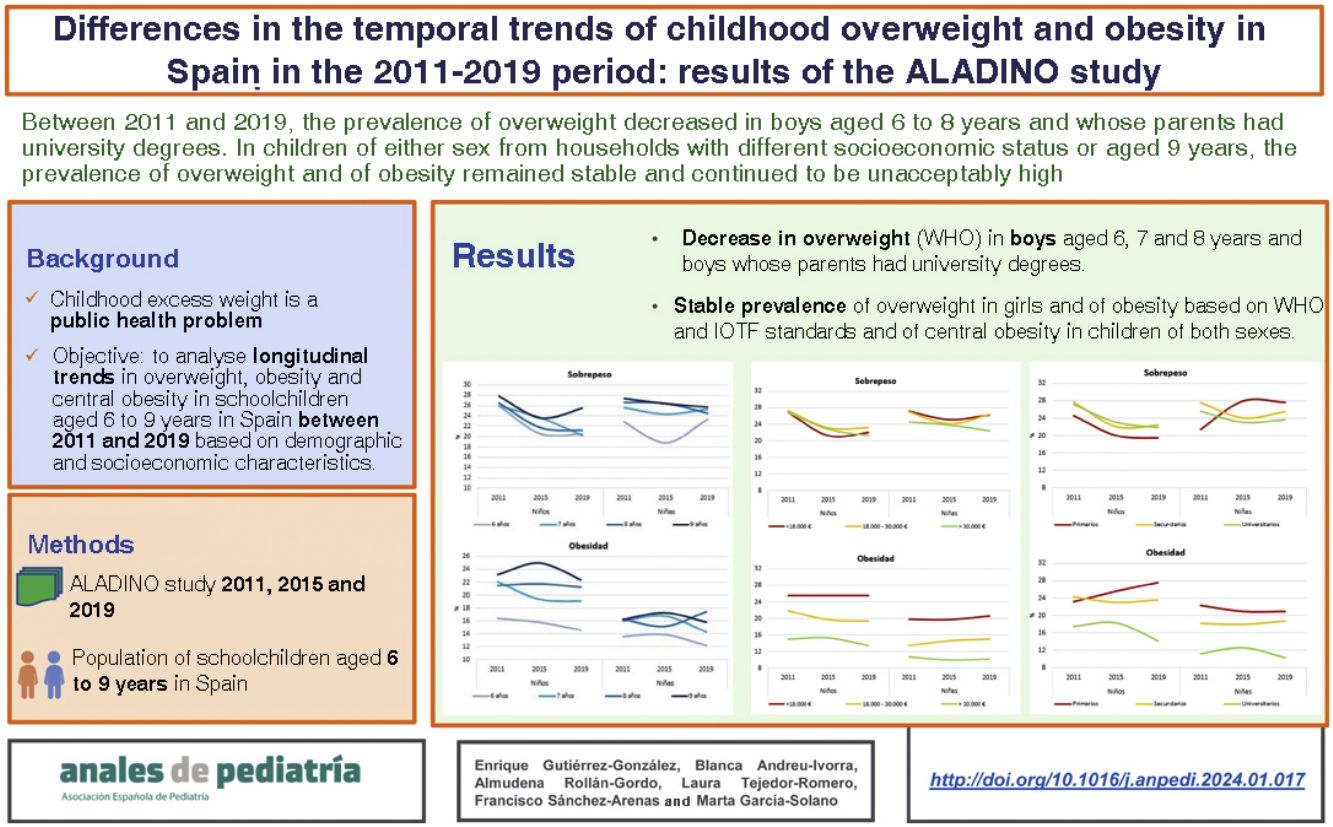 These findings highlight the importance of implementing policies for monitoring and fighting childhood obesity that take into account the underlying gender and socioeconomic inequalities, which contribute to less favourable overweight and obesity trends in girls and in disadvantaged groups, applying inclusive approaches to mitigate these health inequities. Surveillance in upcoming ALADINO rounds will make it possible to establish the changes in these indicators following the COVID-19 pandemic.