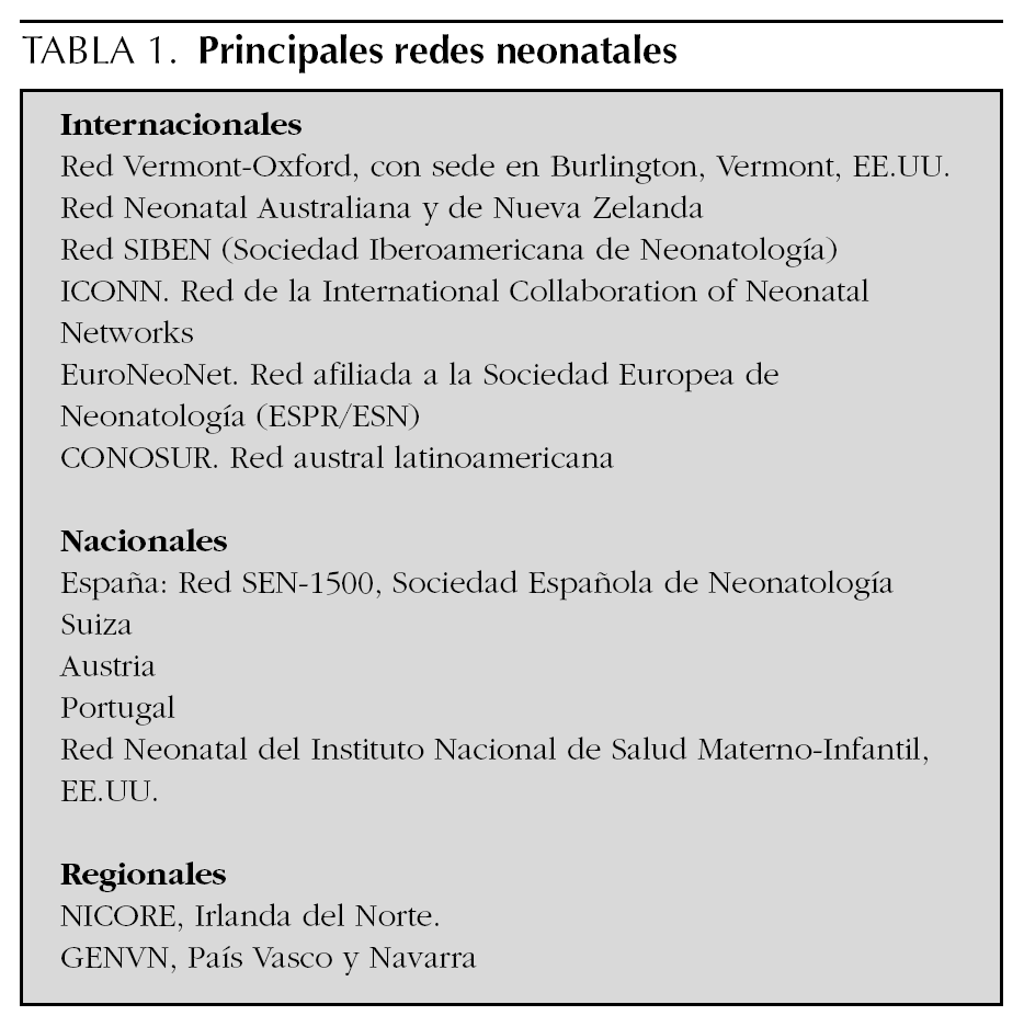 TABLA 1. Principales redes neonatales