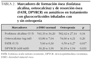 Con respecto a los marcadores de resorción ósea, aunque no existe unanimidad en la literatura especializada, no parece existir diferencias entre niños asmáticos con y sin tratamiento con GCI25,30.