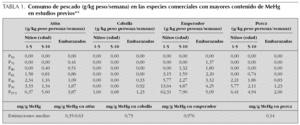 En la tabla 1 se aprecia el mayor consumo de pescado por kilogramo de peso de los niños en las especies comerciales que en estudios previos aparecen con mayor contenido de MeHg. En Hermes también se realizarán las medidas de MeHg en los pescados consumidos en nuestra Región y permitirá comparar mejor con los estándares de OMS/FAO.
