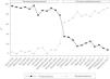 Durante el periodo de estudio se analizaron 1.688 pacientes. Durante el periodo pre-intervención se atendieron 734 pacientes, y en el postintervención, 750. En el periodo ventana se atendieron 204 pacientes. No hubo diferencias entre los 2 periodos en edad (la mediana de edad en el periodo «Pre» fue de 27,8 meses (rango intercuartílico: 14,6-61,9), por 23,7 (rango intercuartílico: 12,1-38,7) en el periodo «Post»; p=0,08) ni en gravedad de los episodios (mediana de valor del Pulmonary Score en ambos periodos fue 4 [rango intercuartílico: 3-5]; p=0,430). El 48,4% de los pacientes del periodo «Pre» (n=343) presentaron un triángulo de evaluación pediátrica alterado a su llegada a urgencias, por un 49,9% (n=360) del «Post» (p=0,557). En el periodo «Pre», 371 (50,5%) pacientes recibieron tratamiento corticoideo, por 449 (59,9%) en el «Post» (p<0,01). En el periodo pre-intervención, 341 (91,9%) recibieron tratamiento con prednisolona y 16 (4,3%) con dexametasona, mientras que en el postintervención recibieron prednisolona 91 (20,3%) y 354 (78,8%) dexametasona (p<0,01). En la figura 1 se muestra el porcentaje de pacientes tratados con cada uno de los corticoides a lo largo de los meses. No hubo diferencias en el porcentaje de ingresos (9,3% en el periodo «Pre» por 9,0% en el «Post», p=0,865) ni en el de reconsultas (6,6% en el grupo «Pre» y 6,8% en el «Post»; p=0,821).