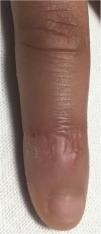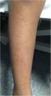 Presentamos el caso de un niña de 9 años que consultó por exantema pruriginoso asociado a odinofagia y mialgias de 9 días de evolución. Entre los antecedentes destacaba epilepsia parcial, motivo por el cual se instauró tratamiento con oxcarbamacepina 15 días antes del inicio del exantema, que fue suspendido tras la aparición de las primeras lesiones. En la anamnesis refirió fiebre de hasta 39°C de 24 horas de duración asociada a odinofagia, mialgias generalizadas y astenia, antes del inicio del cuadro. Después comenzó con exantema en cara, de evolución cráneo-caudal, muy pruriginosa, y el 5.° y el 6.° día de evolución reapareció la fiebre durante 48 horas, con picos de hasta 39°C. En la exploración llamó la atención una erupción micropapular eritematosa distribuida por toda la superficie corporal, más llamativa en extremidades inferiores (figs. 1 y 2); asimismo, en la falange distal de los dedos de las manos se apreciaron lesiones edematosas dolorosas al tacto (fig. 3). El resto de la exploración fue normal, salvo hiperemia faríngea. No existían antecedentes de procesos infecciosos recientes en el núcleo familiar. Dada la situación epidémica actual, los síntomas generales (fiebre, mialgias) y de vía respiratoria superior (odinofagia) y las lesiones pruriginosas de predomino en tronco, extremidades inferiores y en regiones distales descritas previamente en hasta en un 20% de las infecciones por SARS-CoV-21-3, se solicitó PCR en exudado nasofaríngeo, que resultó positiva. La paciente recibió tratamiento con prednisona oral durante 3 días a 1 mg/kg, con posterior descenso a 0,5 mg/kg durante 2 días. La respuesta al tratamiento fue favorable, con mejoría significativa de las lesiones y desaparición del prurito a las 48 horas de iniciar el tratamiento; posteriormente, asintomática.