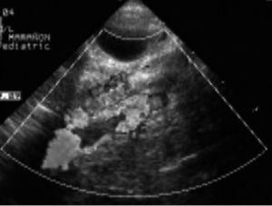 En los controles ecográficos realizados a la semana del diagnóstico, se pone de manifiesto la repermeabilización tanto del seno longitudinal superior como de la aorta abdominal.