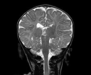 Figura 2. Resonancia magnética donde se observa un trombo en el seno longitudinal superior.