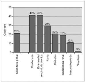 Figura 1. Cobertura de vacunación antigripal global y según la patología de base.