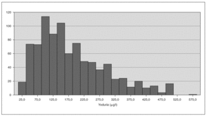 Figura 2. Distribución de las yodurias de la muestra.