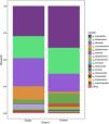 Los géneros más frecuentes en el grupo de casos fueron Haemophilus, Streptococcus, Moraxella y Corynebacterium, con abundancias relativas del 27,55, el 20,62, el 26,20 y el 12,25%, respectivamente. En comparación, el género dominante en el grupo control fue Haemophilus, seguido de Streptococcus, Moraxella y Dolosigranulum (el 38,83, el 24,21, el 16,79 y el 9,40%, respectivamente). La abundancia relativa del resto de los géneros identificados fue inferior al 4% (fig. 2) (tabla 2).