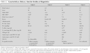 Sin antecedentes personales de interés. Abuela paterna con bocio coloideo. Los datos clínicos y analíticos al diagnóstico se recogen en la tabla 2.