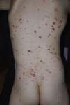Generalmente comienza como una erupción papulovesicular que evoluciona a lesiones hemorrágicas y/o ulcerativas. Existe una variante febril ulceronecrótica de curso agresivo y potencialmente letal.