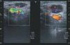 Figura 1.Estudio ecográfico: adenopatías de tamaño significativo, muy hipoecogénicas y muy vascularizadas (hipervascularización de carácter central), dos adenopatías de gran tamaño localizadas en tejido celular subcutáneo, adyacentes y anteriores a los vasos femorales comunes y al cayado de vena safena mayor, la mayor de 2 1,3 cm.