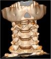 En la valoración, refiere dolor cervical y odinofagia. En la exploración se objetiva un hematoma cervical anterior. Se realiza una radiografía cervical para descartar lesiones de la vía aérea, identificando una lesión compatible con fractura de hioides (fig. 1). Se confirma el diagnóstico de fractura-luxación del asta mayor izquierda del hueso hioides mediante TC, descartando lesiones asociadas (figs. 2 y 3). Se decide tratamiento conservador con analgesia, dieta semiblanda y corticoterapia. Se realiza una laringoscopia que descarta complicaciones. Dada la buena evolución, se decide alta a las 24 h.