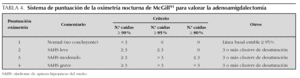 La pulsioximetría nocturna puede resultar de utilidad, ya que la aparición de desaturaciones durante el sueño orienta el diagnóstico de SAHS si la clínica es sugestiva y no existen otras patologías en el niño. La fiabilidad de la prueba depende del criterio empleado para considerarla positiva. Si se requiere un índice de desaturaciones alto (p. ej., > 15) para considerar la pulsioximetría patológica, aumenta su especificidad diagnóstica pero baja su sensibilidad, mientras que si se considera patológico una frecuencia menor de desaturaciones, aumenta la sensibilidad a costa de la especificidad. De cualquier forma, las desaturaciones pueden tener una causa distinta (p. ej., apneas centrales) y además son frecuentes los casos de SAHS que no presentan desaturaciones, por lo que las limitaciones de la pulsioximetría como método aislado de diagnóstico son evidentes. Se considera que esta técnica, en niños con hipertrofia adenoamigdalar y sin otras patologías, tiene un alto valor predictivo del test positivo pero un bajo valor predictivo del test negativo 90. por tanto, una pulsioximetría patológica en un niño con clínica sugestiva sería prácticamente diagnóstica de SAHS, pero en el caso de ser normal no descartaría su presencia. Recientemente se ha publicado un sistema de puntuación de la pulsioximetría nocturna que ayuda a decidir la necesidad de tratamiento con adenoamigdalectomía en niños con clínica sugestiva de SAHS y sin otras patologías (tabla 4) 91.