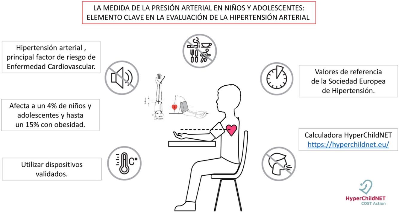 La hipertensión arterial es el principal factor de riesgo modificable para la enfermedad cardiovascular, ocupando el primer lugar entre las causas de pérdida de años de vida ajustados por discapacidad. En los últimos años la hipertensión arterial en niños y adolescentes ha ganado terreno en la medicina cardiovascular gracias a los avances en diversas áreas de la investigación fundamentalmente fisiopatológica y clínica. A pesar de los avances que se han llevado a cabo en los últimos años, la prevención, diagnóstico y tratamiento de la hipertensión arterial en niños y adolescentes todavía son susceptibles de mejorar. En este sentido cobra especial relevancia la medida correcta de la presión arterial que contempla una serie de elementos indispensables como son los dispositivos de medición, el procedimiento reglado y la interpretación de los resultados con base en percentiles según edad, sexo y talla. La disponibilidad de una calculadora de acceso libre facilita el diagnóstico y seguimiento de la hipertensión arterial https://hyperchildnet.eu/