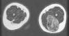 En la radiografía simple se aprecia una tumoración de partes blandas bien delimitada, de unos 8 x 5cm, con múltiples calcificaciones groseras internas (Figura 1).