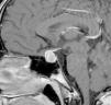 La paciente es remitida a endocrinología pediátrica tras el hallazgo de una cifra elevada de prolactina (198ng/ml, rango de normalidad: 8,5-26,5ng/ml). A la entrevista dirigida, la paciente refiere un año de visión borrosa intermitente y cefalea frontal de 3 meses de duración, acompañado de galactorrea unilateral de escasa cuantía. A la exploración física: talla 169,5cm (DE:+1,1), peso 53,3kg, IMC 19,29kg/m2 (DE:−0,79). Estadio puberal V de Tanner y fenotipo armónico. Ausencia de galactorrea, hirsutismo o acné. El hemograma y la bioquímica general fueron normales, destacando la determinación de prolactina (205,6ng/ml). La resonancia magnética (RM) (fig. 1) evidenció una glándula hipofisaria aumentada de tamaño, con borde superior convexo hacia línea media y aumento de señal sugestivo de cambios hemorrágicos subagudos. La glándula hipofisaria, impronta y oblitera la cisterna supraselar con efecto masa sobre el quiasma óptico. En el estudio oftalmológico se constató una hipermetropía leve, con normalidad en la campimetría y en el fondo de ojo. Con los datos obtenidos se estableció el diagnóstico de prolactinoma con apoplejía subclínica, iniciando tratamiento con cabergolina a dosis de 0,25mg la primera semana y 0,50mg/semana de mantenimiento. Al mes de iniciar el tratamiento, se aprecia en la RM de control (fig. 2), el adenoma con unas medidas de 10×8mm, probablemente sobreestimadas por los signos de sangrado, con una cifra de prolactina de 12,6ng/ml. En la actualidad la paciente presenta ciclos menstruales regulares, visión normal sin cefalea y ausencia de galactorrea.