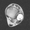 Ante tal hallazgo se derivó a la paciente a Traumatología Infantil que solicitó resonancia magnética (figs. 2 y 3) que mostró niveles de contenido líquido compatibles con un quiste óseo aneurismático. Se procedió a punción-aspiración que resultó negativa para células malignas y con anatomía patológica compatible con quiste óseo aneurismático. La paciente sigue controles evolutivos para valorar posible tratamiento quirúrgico en un futuro.