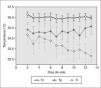 Figura 1. Cambios en la temperatura durante el período basal. Tc: temperatura central; Tp: temperatura periférica; Ti: temperatura incubadora.