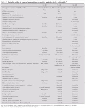También deberá existir una dotación básica de material (tabla 2), según niveles asistenciales8.