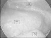 Figura 2. Imagen toracoscópica de la tumoración y su relación con el pulmón. A: pared torácica anterior; P: pulmón; M: masa mediastino anterior.