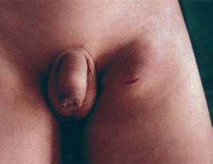 Figura 1. Tumoración inguinal izquierda. Herida incisa.