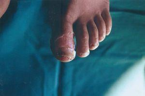 Figura 2. Lesión periungueal primer dedo del pie.