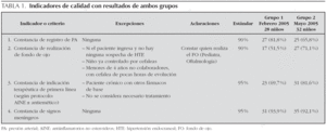 Tres meses después, los resultados no fueron muy distintos (tabla 1): si bien el número de exploraciones de fondo de ojo y la constancia del tratamiento escrito aumentaron, hubo un descenso en la determinación de la presión arterial. La constancia de signos meníngeos fue similar.