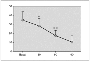 Figura 1. Secreción de melatonina tras un estímulo agudo. Hipoglucemia insulínica.