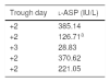 The patient did not exhibit a hypersensitivity reaction after receiving the first dose of Erwinia-ASP. We only detected a suboptimal level of activity (<100IU/L) in the third through (28.8IU/L), which we attributed to a 24-h delay in the administration of the dose (at 72h instead of 48h) because it was Christmas day. The levels of activity returned to normal in subsequent cycles. Therefore, to date there is no evidence of silent inactivation taking place.