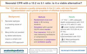 Neonatal resuscitation with the 15 chest compressions to 2 ventilations pediatric ratio. Would it be comparable to the 3:1 standard?