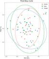Beta diversidad de bacterioma intestinalLa figura 3 muestra el análisis de coordinadas principales (PCoAs) de las comunidades bacterianas entre los diferentes grupos incluidos en el estudio. No se observaron diferencias estadísticamente significativas entre los grupos.