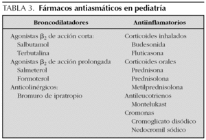 Asociación de agonistas β2-adrenérgicos de larga duración y glucocorticoides inhalados. Sólo existe un trabajo no controlado en niños de esta edad 71. Aunque sus resultados son positivos, se debería esperar a disponer de más estudios sobre el efecto sinérgico de los glucocorticoides y de los agonistas β2-adrenérgicos de larga duración en esta edad para recomendar esta asociación en niños de menos de 3 años.