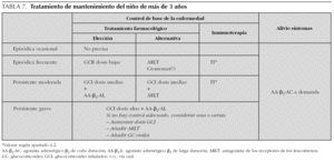 La tabla 7 recoge el tratamiento de mantenimiento del niño de más de 3 años.