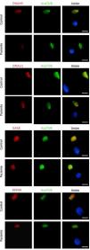 Análisis de inmunofluorescencia de las proteínas del axonema ciliar en una muestra de epitelio ciliado respiratorio de la paciente y en una muestra control. Localización subcelular de proteínas en el axonema ciliar DNAH5, DNALI1, GAS8 y RSPH9 (en rojo), y α-tubulina acetilada (AcαTUB, en verde). La tercera columna muestra la imagen conjunta con el núcleo marcado con DAPI (en azul). DNAH5 está ausente en el axonema ciliar de la muestra de la paciente comparando con el control. Escala bar, 5μm.