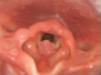 The vocal cords are the most frequent site of JLP. Distal spread has been associated with poorer prognosis and with HPV-11 infection.3 The classic presentation is persistent dysphonia with weak crying between 2 and 4 years of age. The second most common symptom is stridor, first inspiratory and then biphasic. Less common presenting symptoms include chronic cough, recurrent pneumonia, failure to thrive, dyspnoea, dysphagia and acute respiratory distress, especially in infants with an upper respiratory tract infection.4