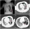 Presentamos el caso de un neonato con bronquiolitis VRS, que ingresa a los 15 días por shock séptico. La EP muestra una consolidación extensa tisulizada en el lóbulo inferior izquierdo (LII) (fig. 1, material suplementario 1), compatible con neumonía2, que presenta cambios en la ecogenicidad del parénquima pulmonar3. Precisa ventilación mecánica, soporte hemodinámico y antibioterapia. Al tercer día, neumotórax izquierdo (drenaje torácico), observándose cambios en la imagen ecográfica: artefactos hiperecogénicos lineales contenidos dentro de la imagen consolidativa en el LII, sugestivos de neumatoceles (fig. 2, material suplementario 2). Estas imágenes se correlacionan con los hallazgos en la radiografía de tórax, y la TAC confirma el diagnóstico de neumonía necrotizante con neumatoceles (fig. 3). Se aísla repetidamente en el hemocultivo S. aureus productor de leucocidina Panton-Valentine (aspirado traqueal negativo).