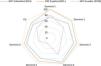 GPC EHI/dominios del AGREE II: puntuaciones de ítems estandarizados. El gráfico muestra que en la guía de España (2015), todos los dominios están más alejados del centro, esto exhibe una calidad superior en todos los aspectos evaluados, en contraste con las guías de Colombia (2013) y Ecuador (2019).