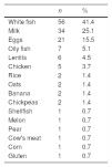 Most patients had FPIES in response to a single food. Table 1 presents the foods that triggered reactions in our sample. We found that 11.9% developed symptoms in response to several foods, and in this subset, 86% reacted to both white and oily fish.