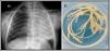 Niño de 3 años con cuadro de dificultad respiratoria en contexto de bronquitis aguda febril. A la exploración física destaca importante trabajo respiratorio con tiraje universal, taquipnea de 70rpm, sibilantes espiratorios bilaterales, con hipoventilación en hemitórax izquierdo y SaO2 del 84%. La radiografía de tórax muestra una opacificación de todo el hemitórax izquierdo con desplazamiento traqueal hacia el pulmón afecto e hiperinsuflación del pulmón contralateral, todo ello compatible con atelectasia pulmonar izquierda completa (fig. 2A). Se realiza a las pocas horas una broncoscopia flexible donde se observa tapón mucoso en bronquio principal izquierdo que oblitera toda la luz bronquial. Se consigue la aspiración completa del mismo obteniéndose moldes bronquiales (fig. 2B) con reexpansión completa del pulmón izquierdo y mejoría rápida del cuadro respiratorio. En el lavado broncoalveolar se detecta adenovirus, confirmándose el diagnóstico de bronquitis plástica por dicho patógeno, una asociación excepcional en nuestro medio3,4. Es dado de alta con exploración normal y posteriormente presenta bronquitis recurrentes leves.