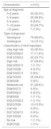 | Very high-risk HLA (%) | High-risk HLA (%) | Moderate risk HLA (%) | Other HLA (%) | P | |