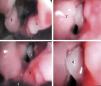 Neonata de 10 días de vida, nacida a término, con serologías maternas negativas para VIH, VHB, rubeola y lúes, que consultó por rechazo de la alimentación, precisando sonda nasogástrica, y distrés respiratorio que no necesitó oxigenoterapia suplementaria. Se objetivaron lesiones vesiculosas con base eritematosa en dorso de mano izquierda y tronco, con lesiones similares en epiglotis, y ambos repliegues, aritenoides y cuerdas vocales (fig. 1). Se obtuvo, mediante punción lumbar, un líquido claro, no purulento, que presentó PCR positiva para VHS tipo 2 y negativa para el resto de virus. En la exploración a la madre se evidenciaron lesiones genitales en el momento del ingreso de la paciente, con serología positiva para el mismo virus.