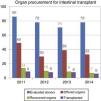 This situation came to light when we analyzed the donation data corresponding to year 2014: of the 78 donors that were assessed for intestinal/multivisceral transplantations, only 33 met the criteria to be offered to patients, and only six transplants were eventually performed. A similar pattern was observed in previous years, as can be seen in Fig. 5.