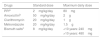 | Bismuth saltsc | 8mg/kg/day | <10 years: 240mg |