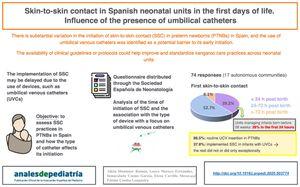 Survey on the practice of skin-to-skin contact in Spanish neonatal units during the first days of life. Influence of the presence of umbilical catheters