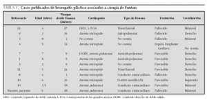 Revisando en la bibliografía los pacientes que presentaron esta complicación asociada a cardiopatía, se han encontrado 21 pacientes, de los cuales en 12, incluido el caso que nosotros exponemos, se había practicado una operación tipo Fontan (tabla 1).