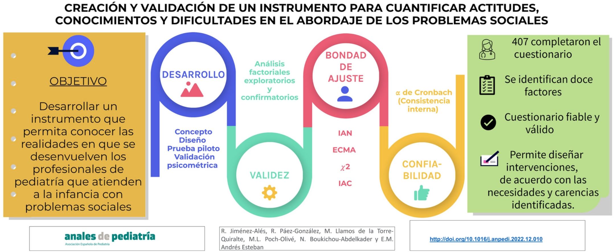 ConclusionsThis questionnaire comprising 138 items distributed in 12 factors is a reliable and valid instrument to analyse the attitudes, knowledge and difficulties in the approach to social problems in children by paediatricians, which will allow the design of interventions according to the needs and deficiencies identified through it.