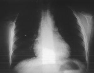 Figura 2. Radiografía de tórax: escápula derecha elevada.